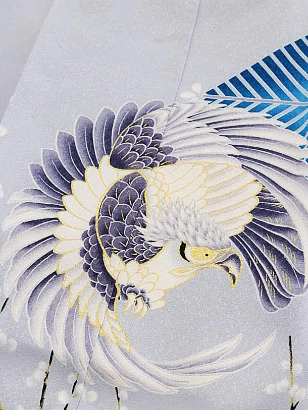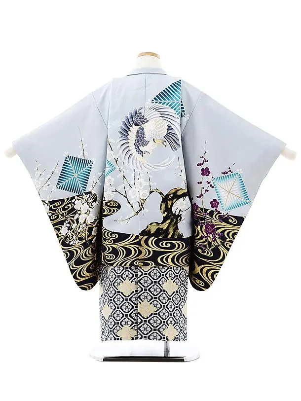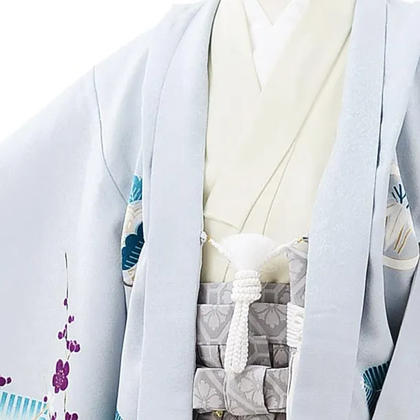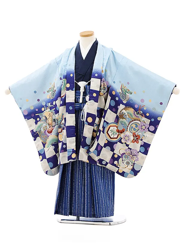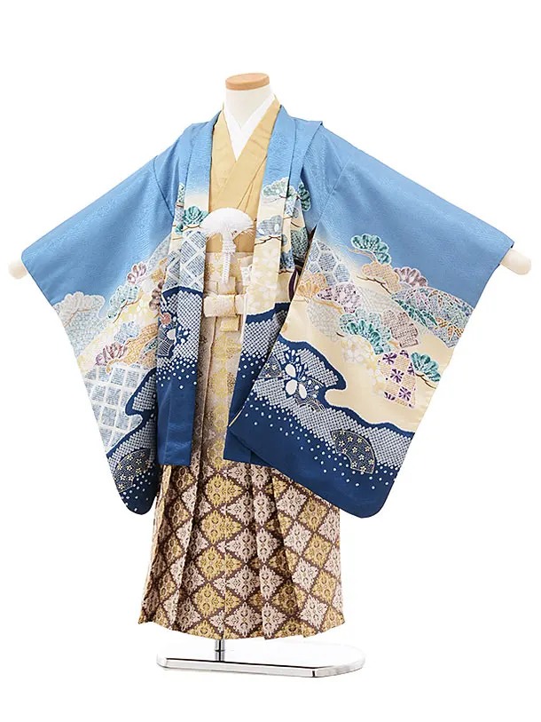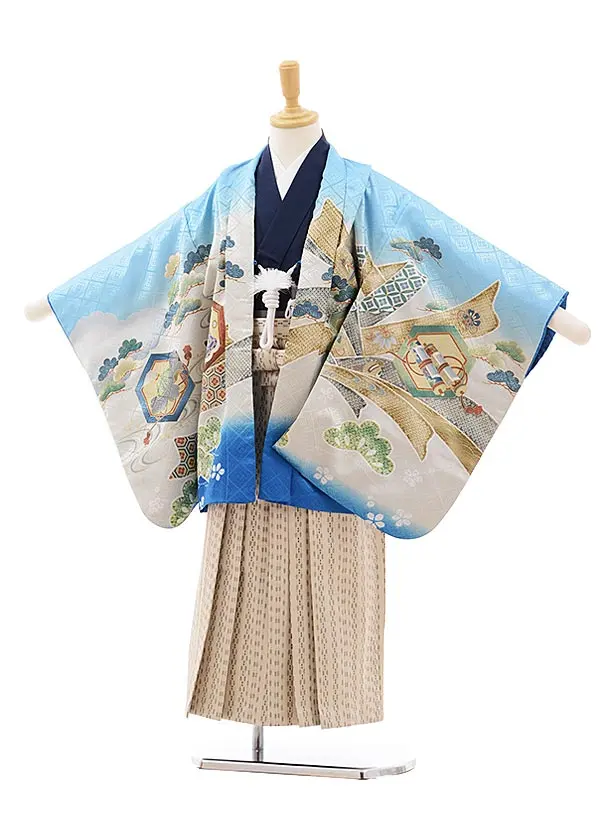 七五三レンタル(5歳男袴)5748水色水面梅鷹xグレー紺ぼかし袴