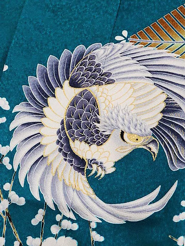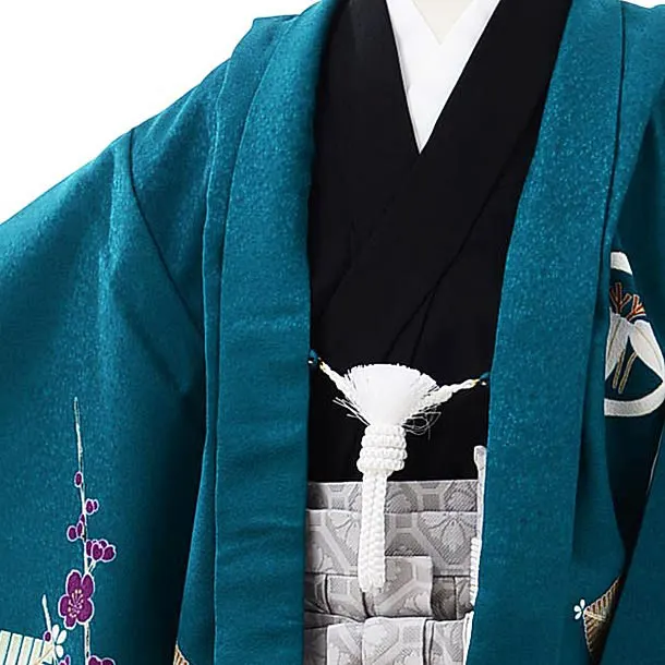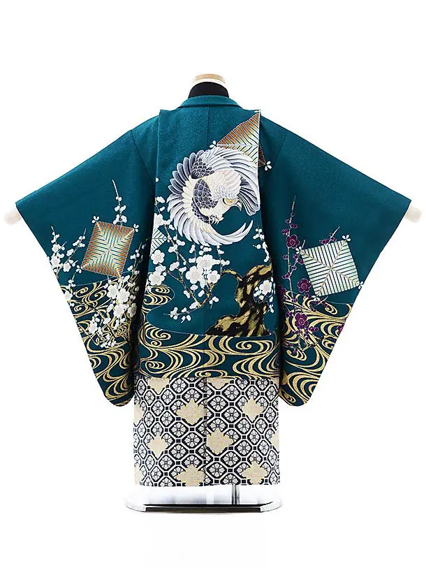 七五三レンタル(5歳男袴)5749エメラルドブルー水面梅鷹xグレー紺ぼかし袴