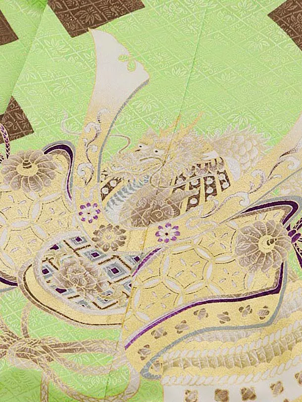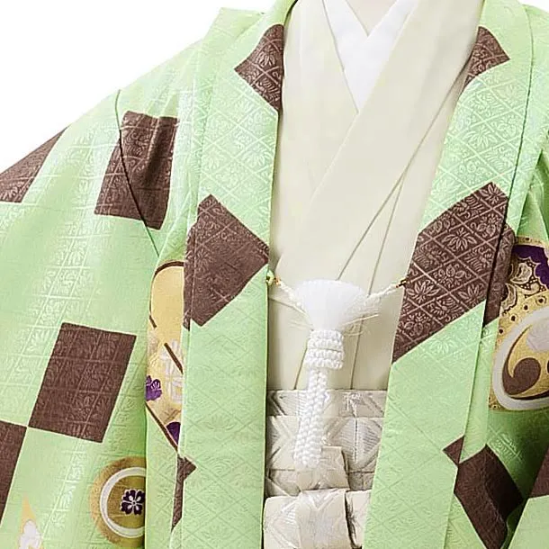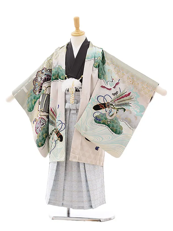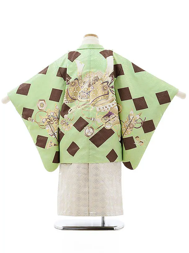 七五三レンタル(5歳男袴)5755ミントグリーン菱兜x白シルバー袴