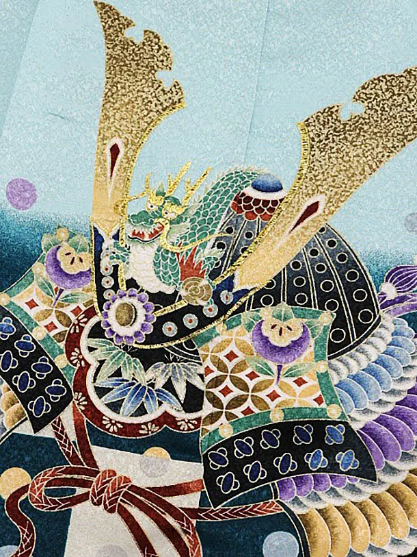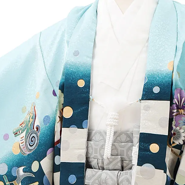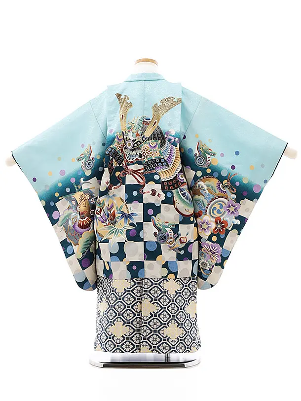 七五三レンタル(5歳男袴)5763ミントグリーン市松ぼかし兜xグレー紺ぼかし袴