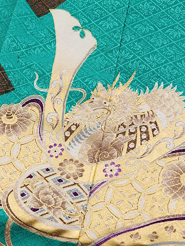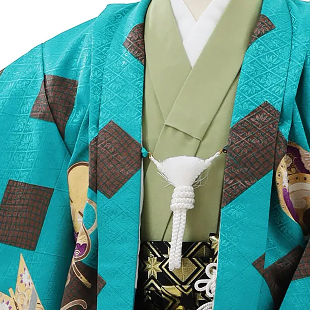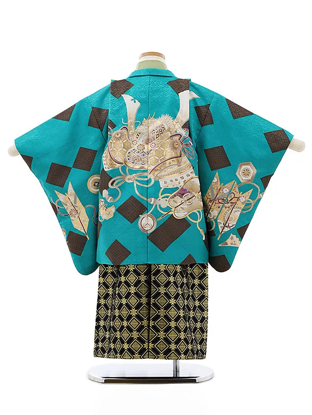 七五三レンタル(3歳,4歳男袴)5767ターコイズ菱かぶとx黒ゴールド袴