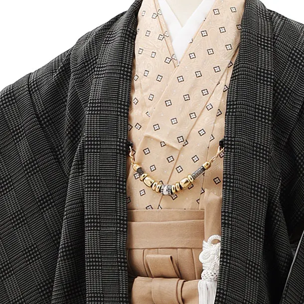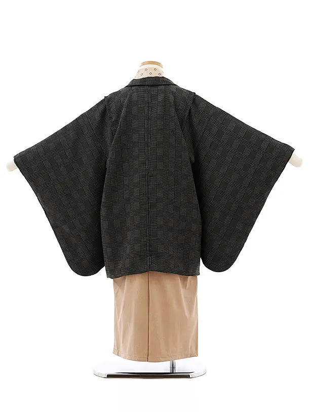 七五三レンタル(5歳男袴)5771グレー地グレンチェックxベージュレザー風袴