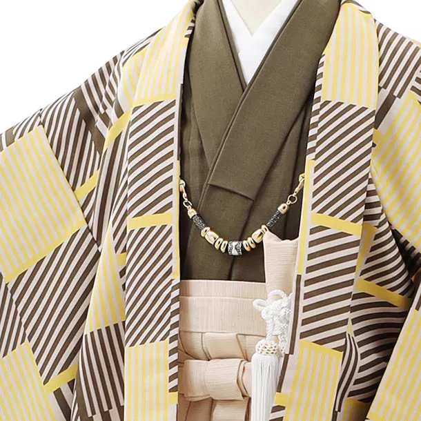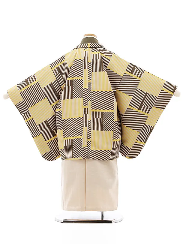 七五三レンタル(5歳男袴)5773ベージュ地変わり柄xアイボリーラメ袴