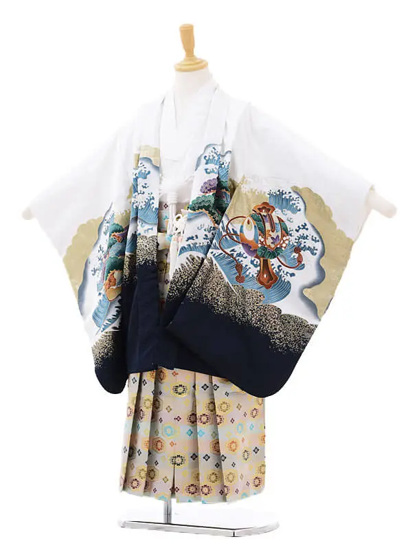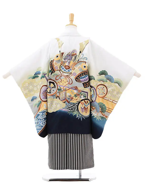 かんたん七五三レンタル(5歳男の子袴)5784白地かぶとに丸紋×白