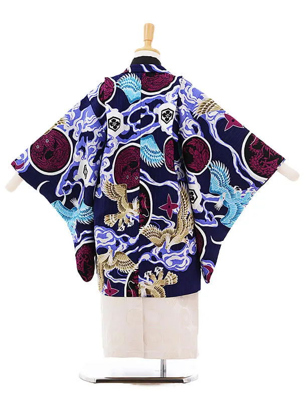 かんたん七五三(5歳男の子袴)5792JAPANSTYLE鷹に丸紋紺×白地袴