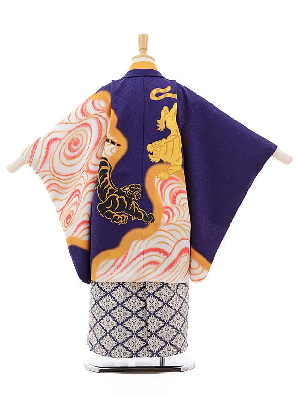 かんたん七五三レンタル(5歳男の子袴)5795 花わらべ 紫地 虎×白地袴