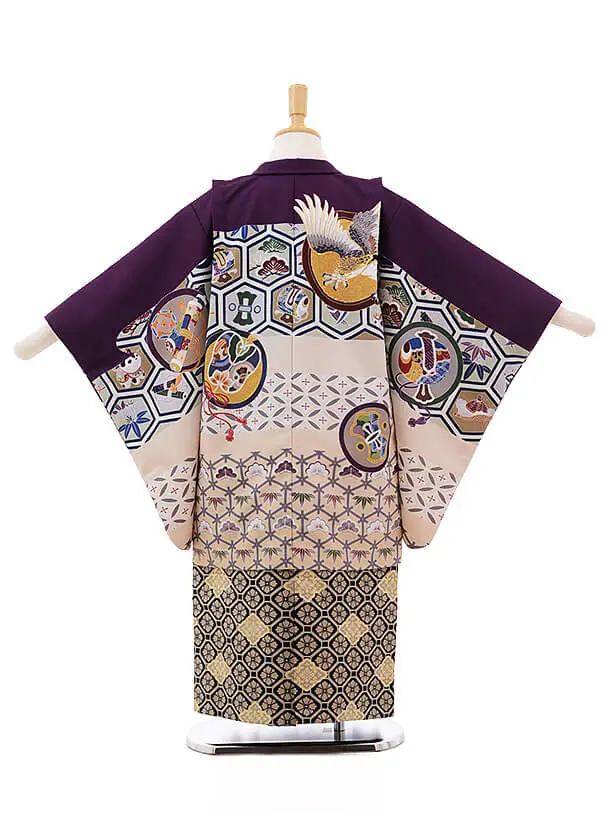 かんたん七五三(5男袴)5799 式部浪漫 紫 吉祥×ベージュ地紺袴