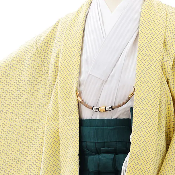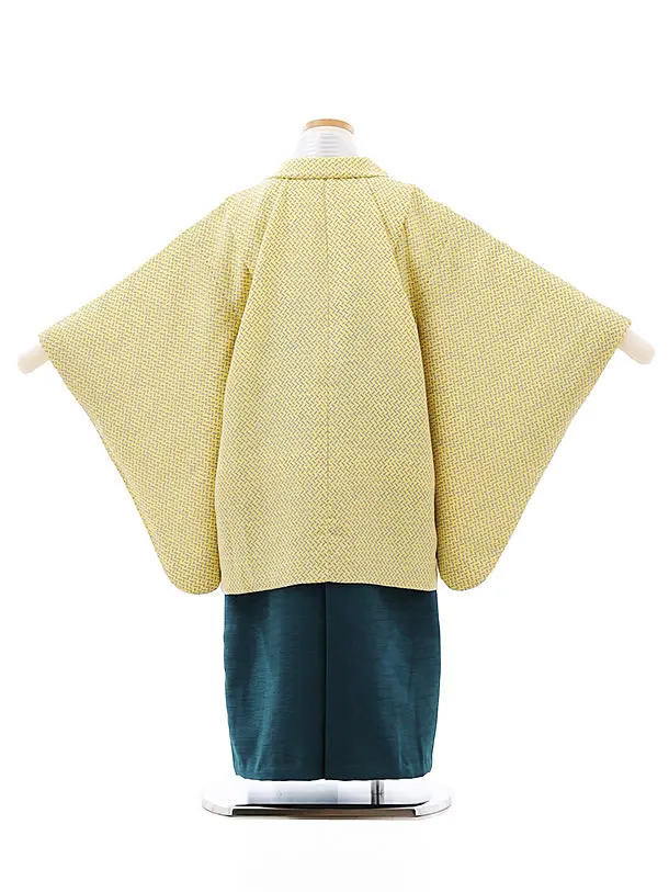 七五三レンタル(5歳男袴)5805黄色小紋xブルーグリーン袴