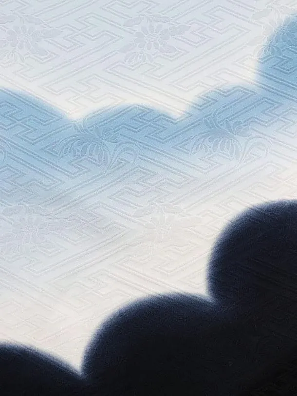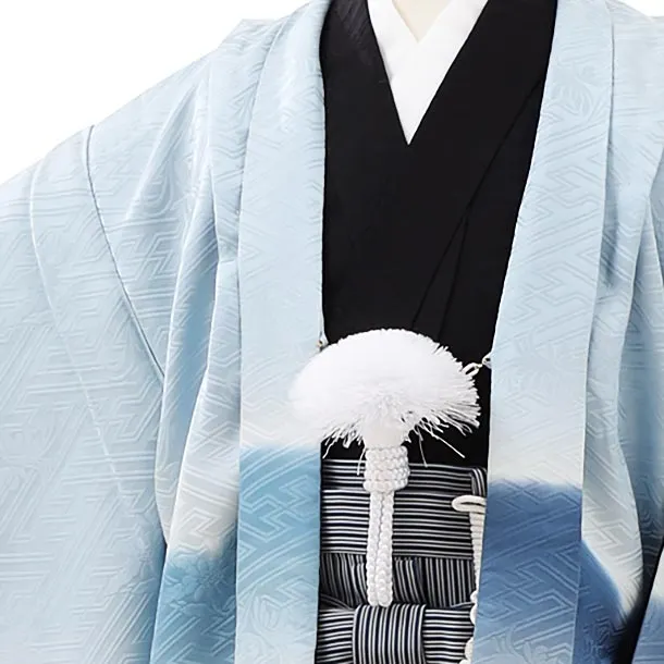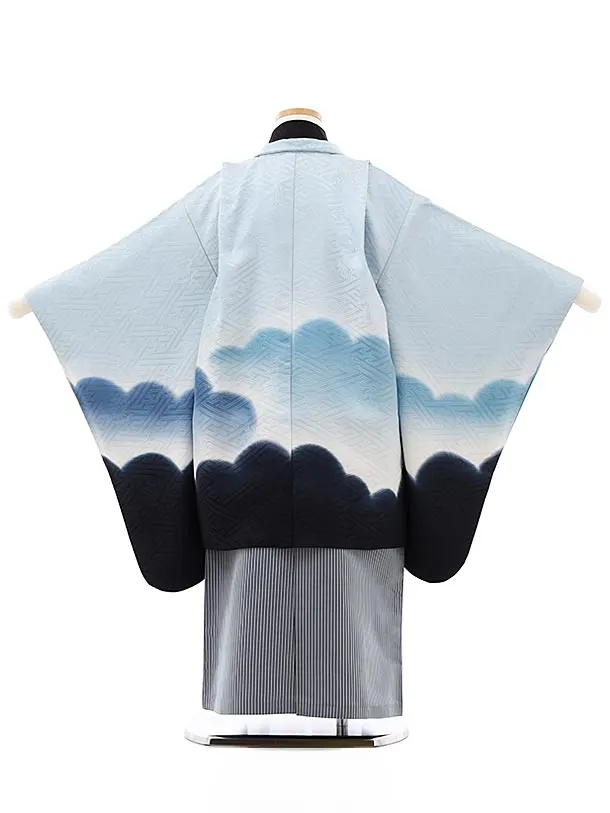 七五三レンタル(5歳男袴)(正絹)5821水色ぼかし雲x紺縞袴