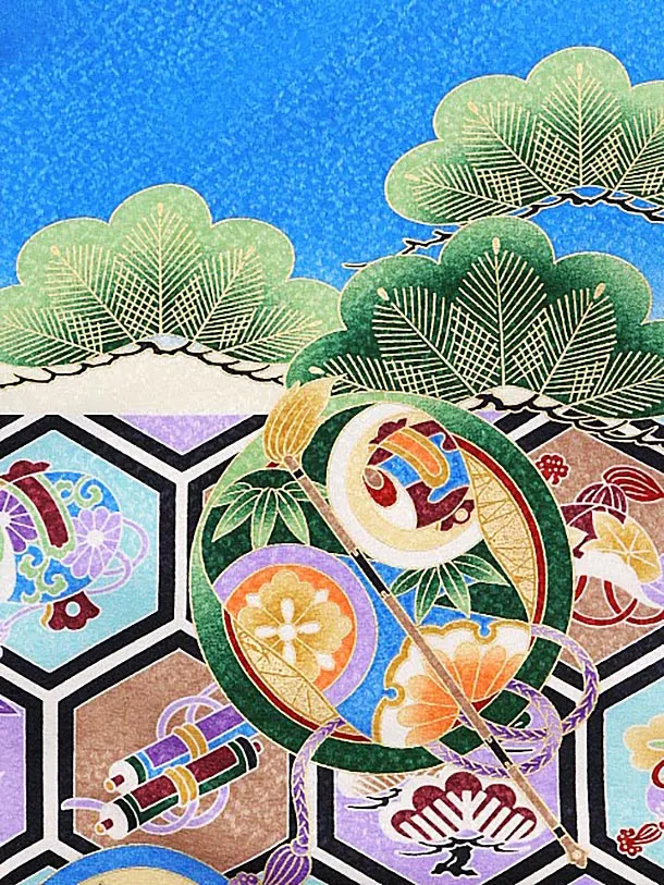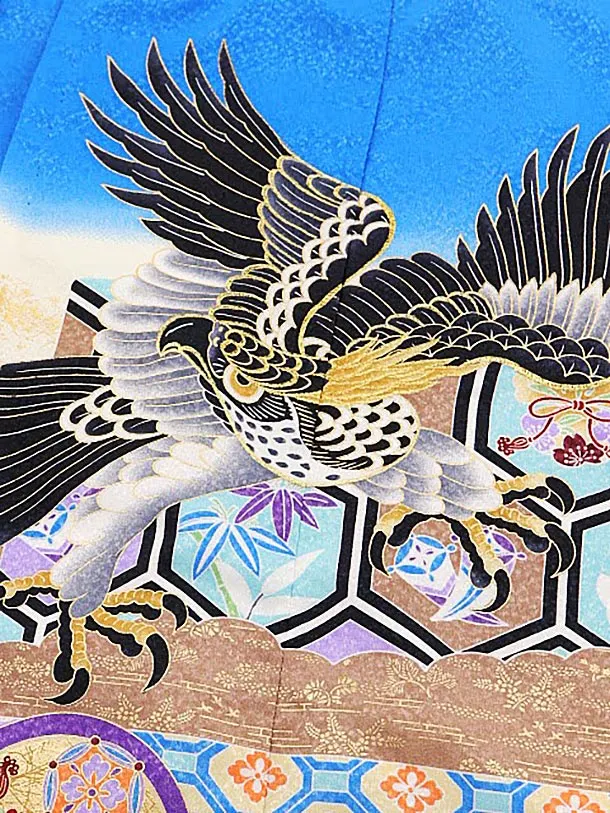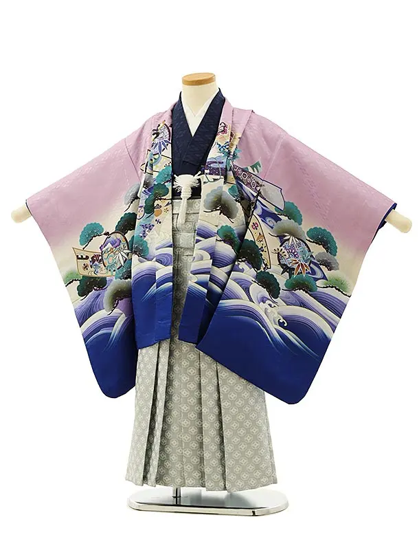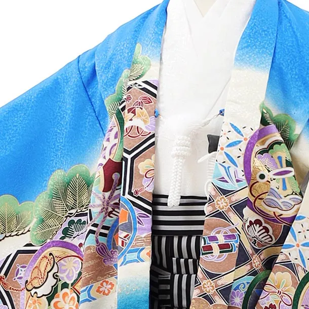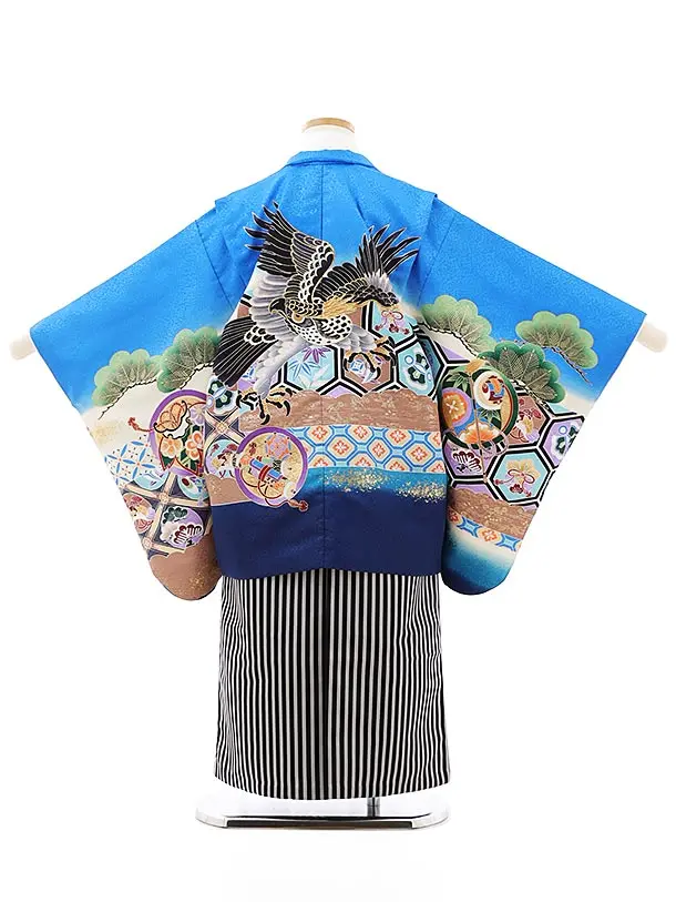 かんたん七五三レンタル(5歳男袴)5829スカイブルー鷹x黒白縞袴