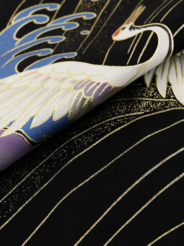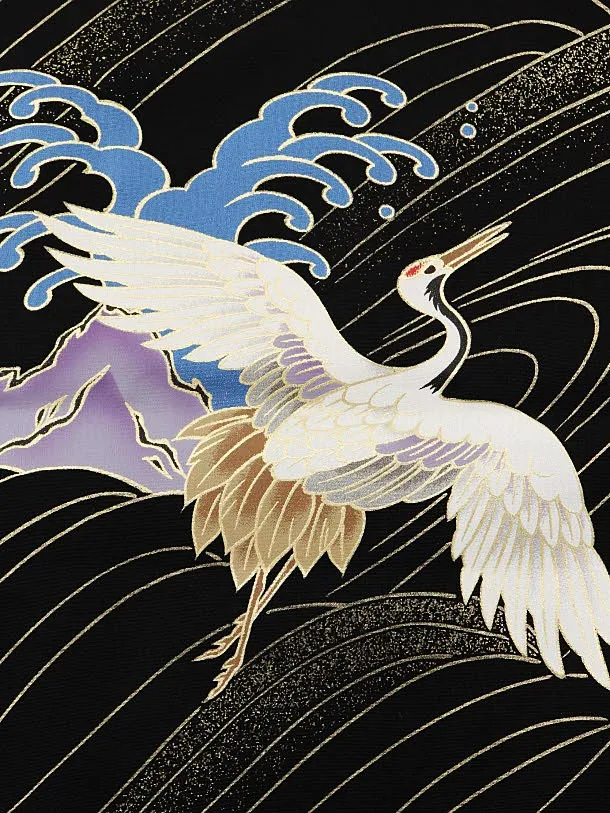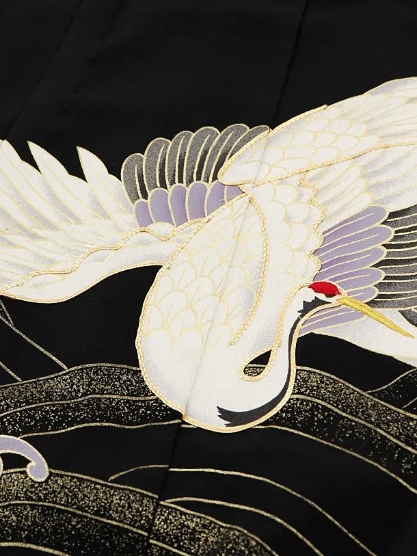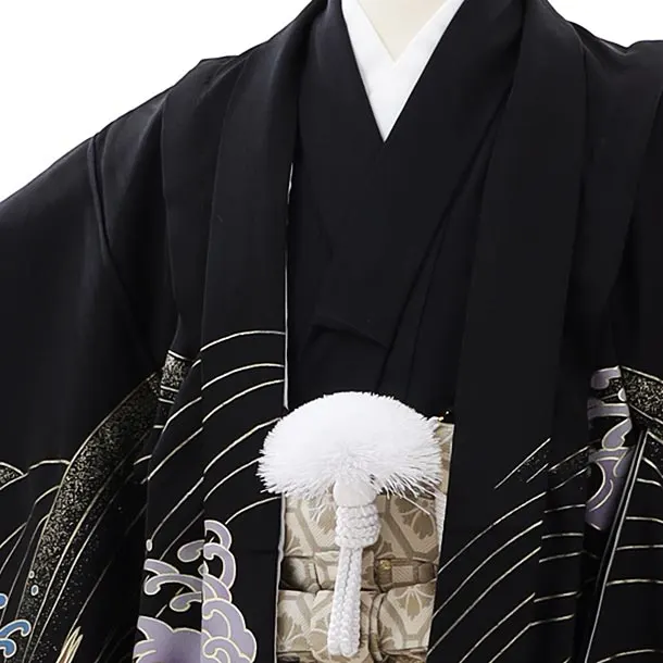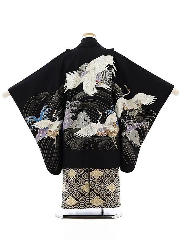七五三レンタル(5歳男袴)5846黒地波に鶴xベージュぼかし袴