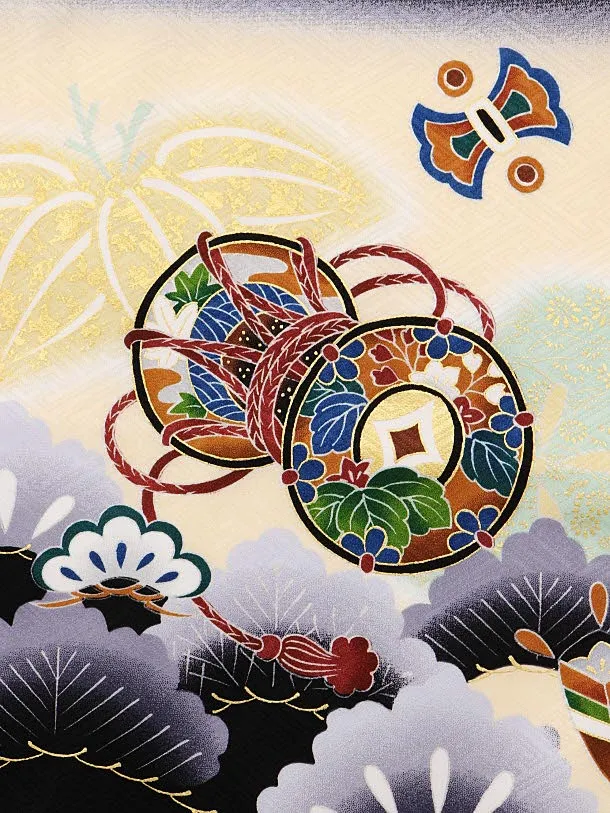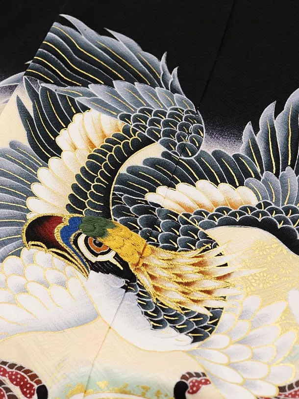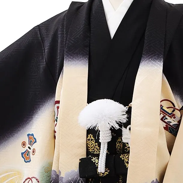 七五三レンタル(5歳男袴)5866黒地松に鷹x黒金菱袴