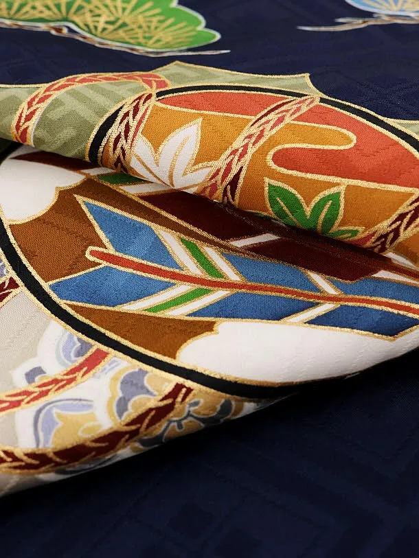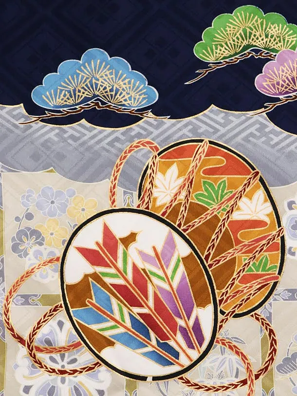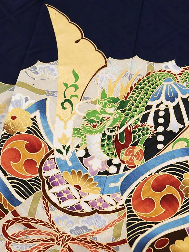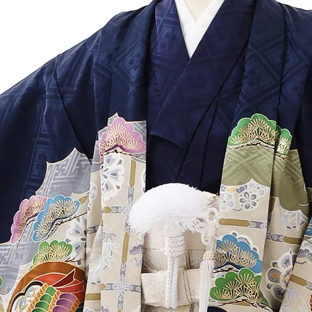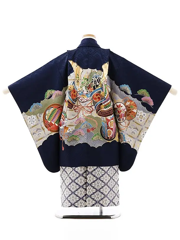 七五三レンタル(5歳男袴)5867紺地格天井文兜x白紺ぼかし袴