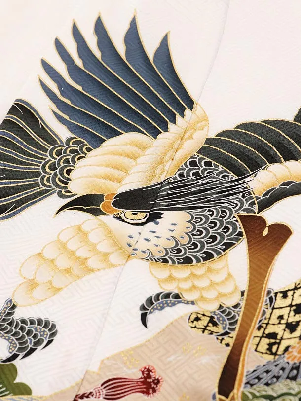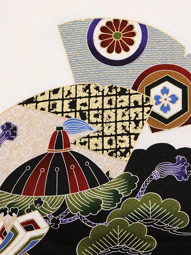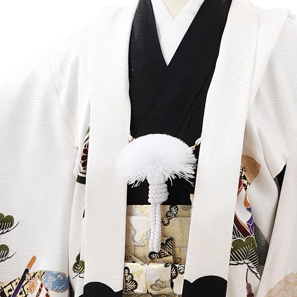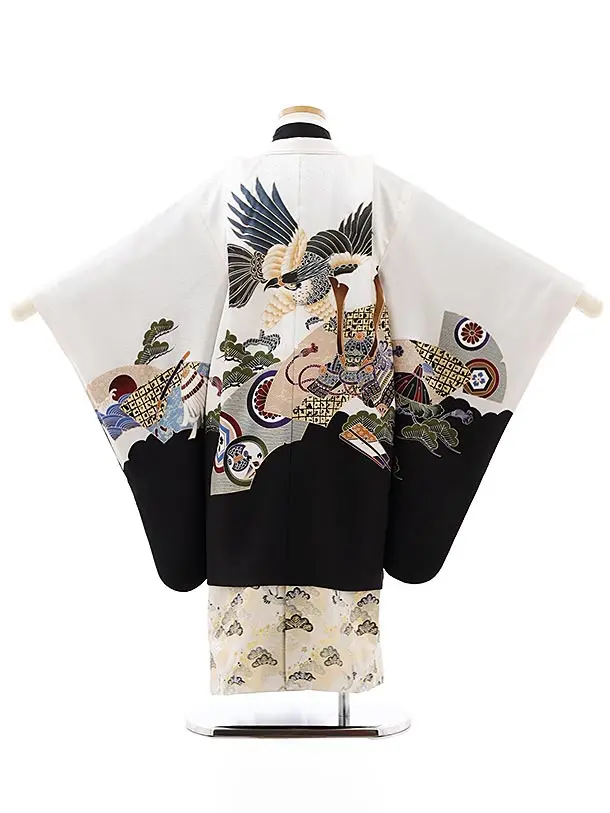 七五三レンタル(5歳男袴)5870白地裾黒鷹かぶとx白松袴