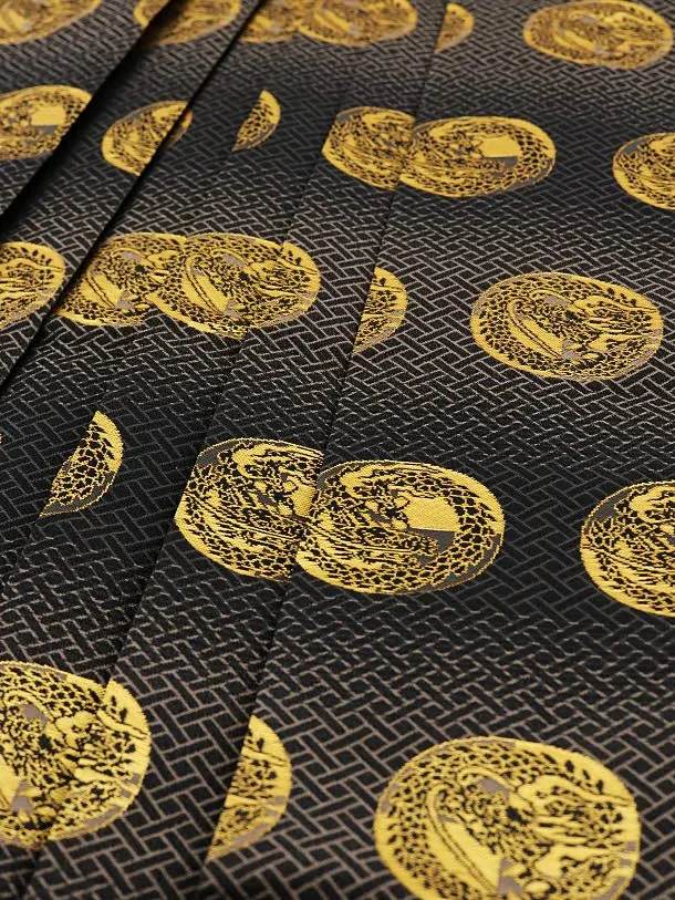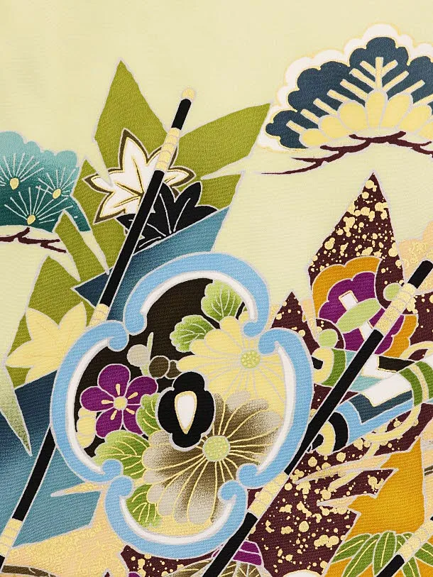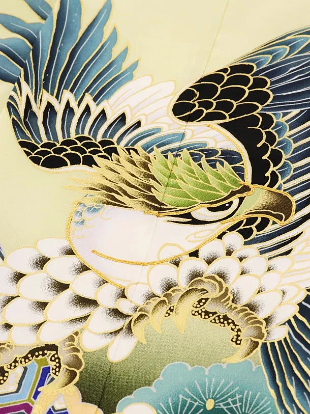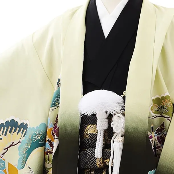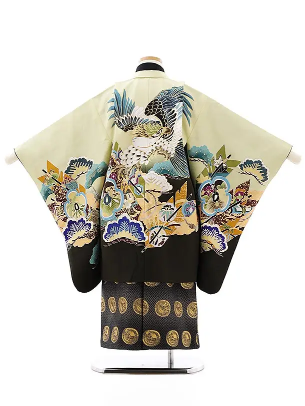 七五三レンタル(5歳男袴)5872ヒワ色裾黒鷹x黒ゴールド袴
