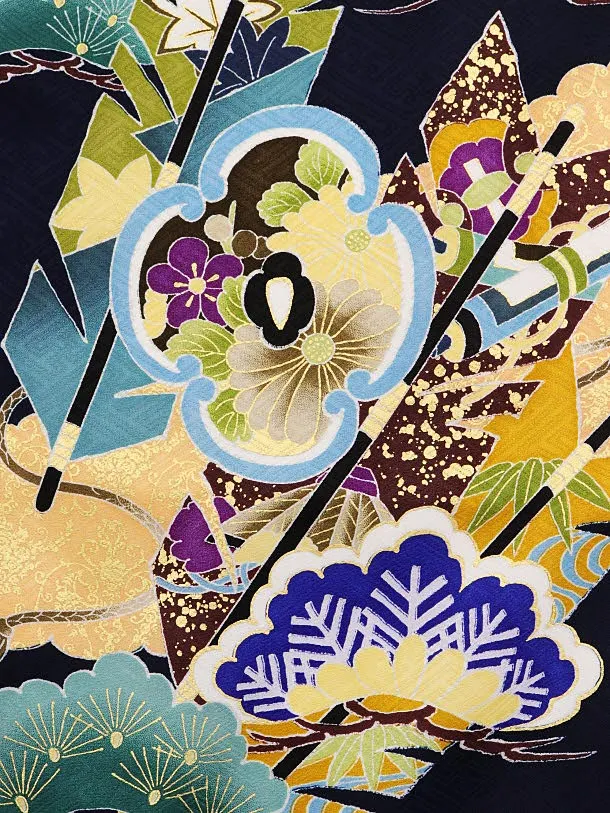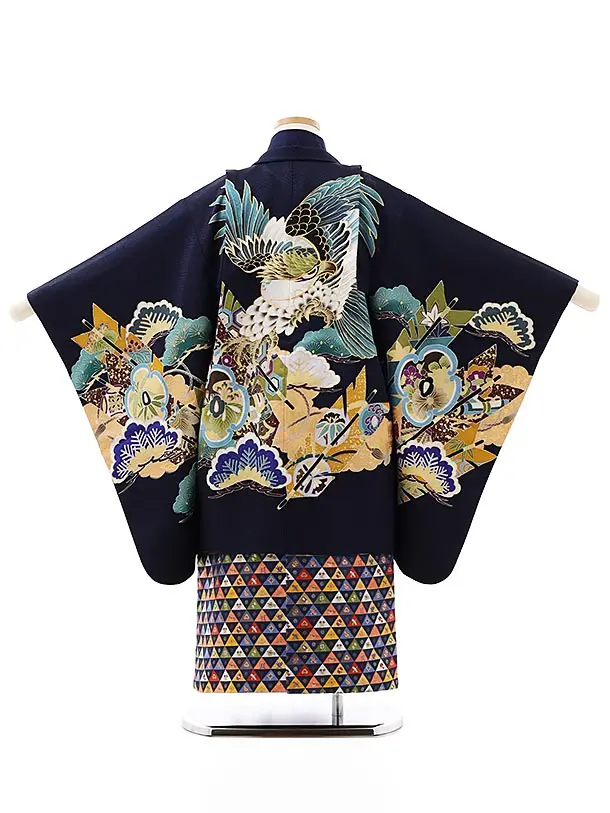 七五三レンタル(5歳男袴)5873紺地松鷹x紺カラフル袴