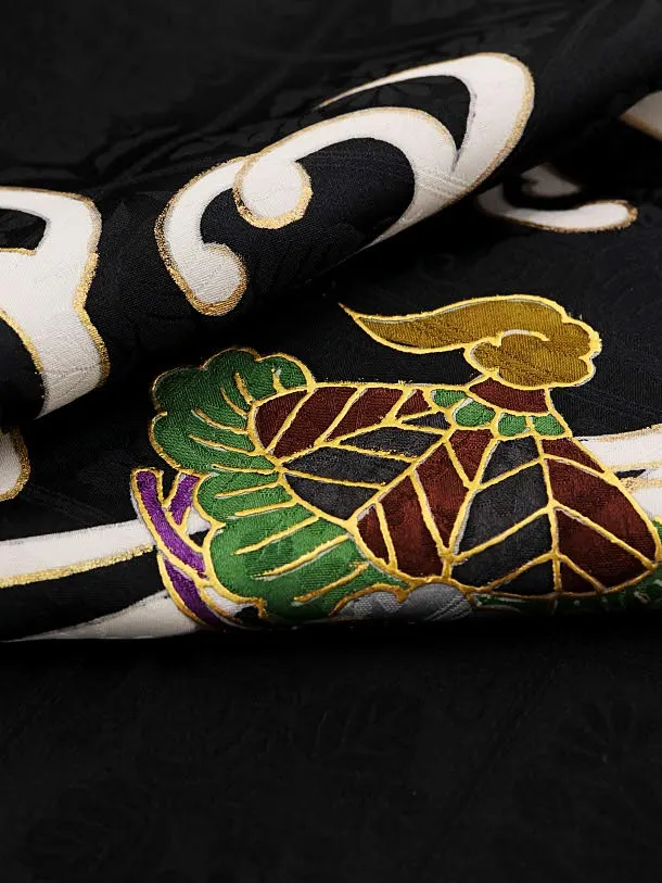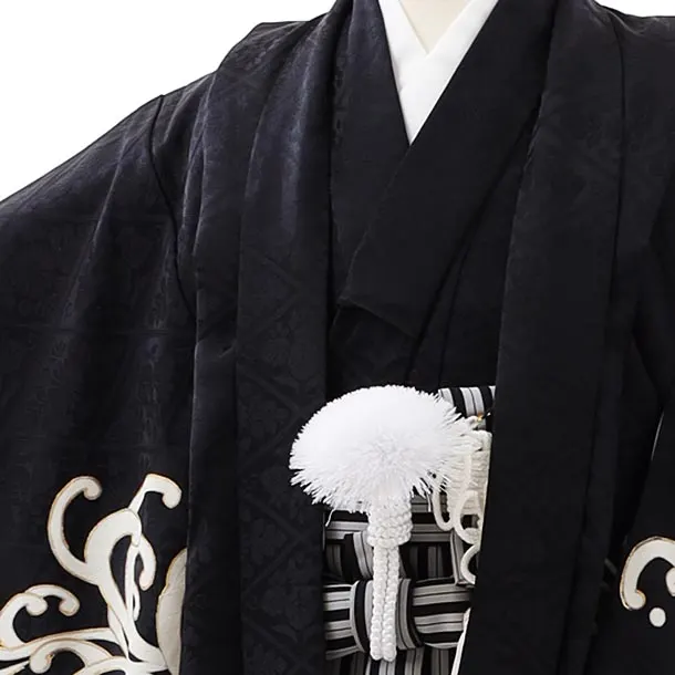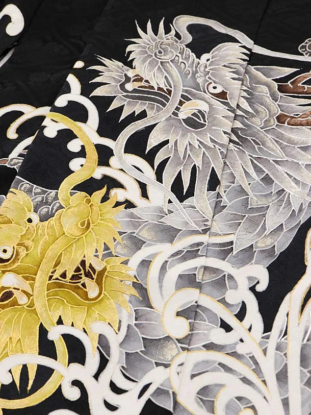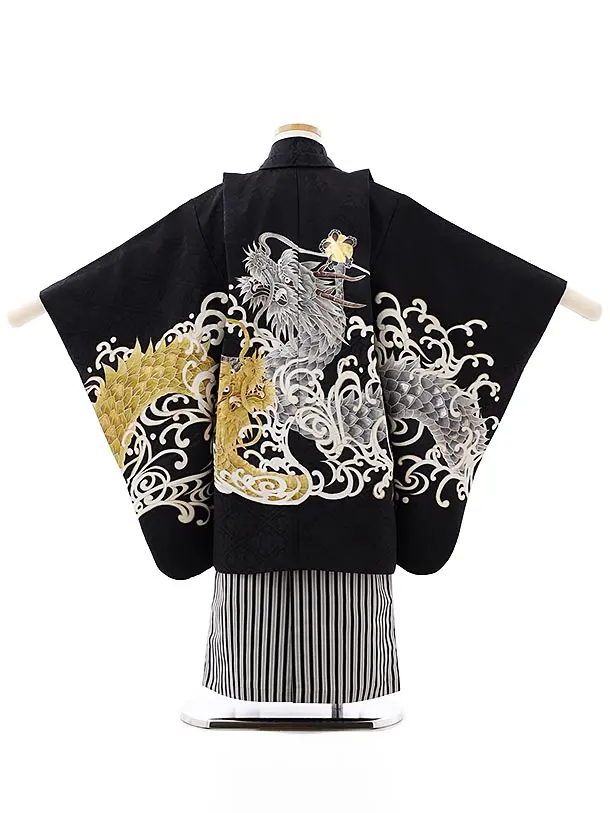 七五三レンタル(5歳男袴)(高級正絹)5876黒地龍x黒縞袴
