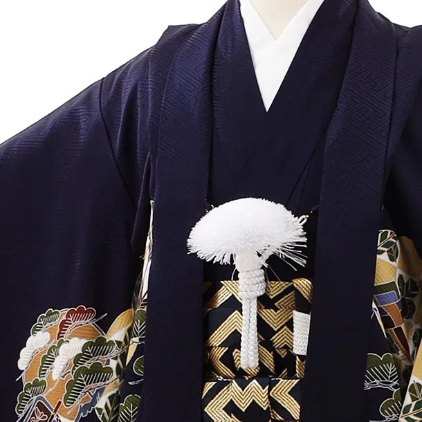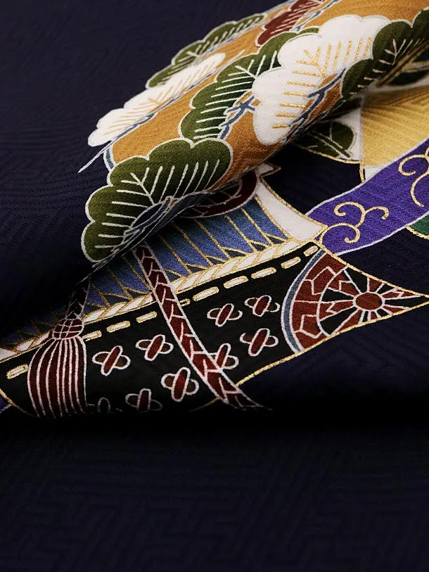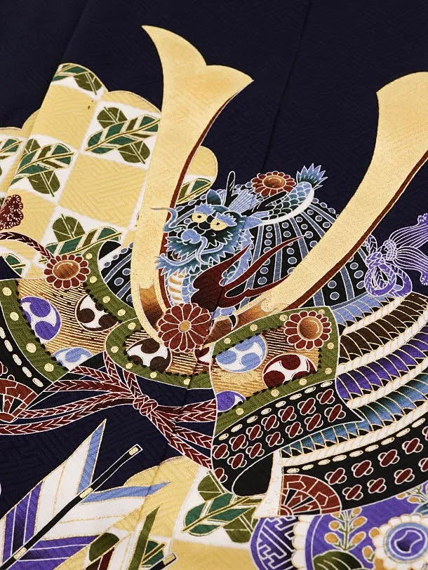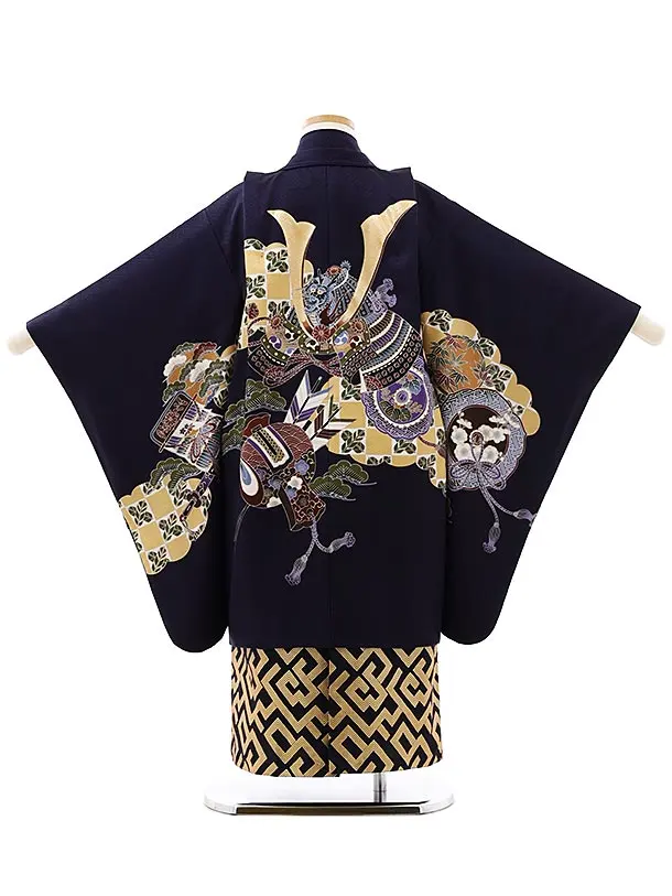 七五三レンタル(5歳男袴)5881【正絹】濃紺地小槌に兜x黒金袴