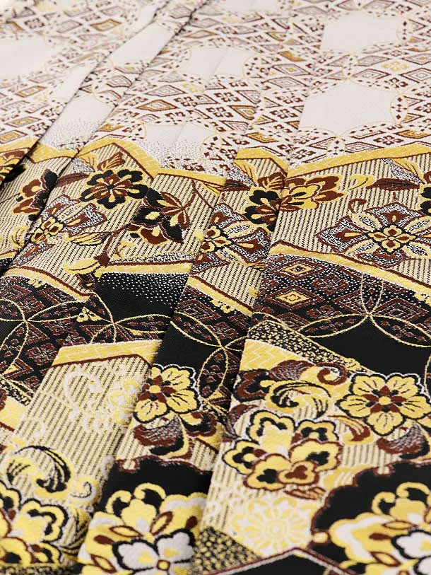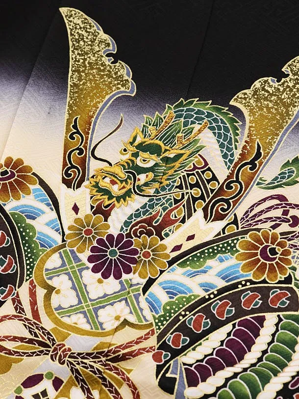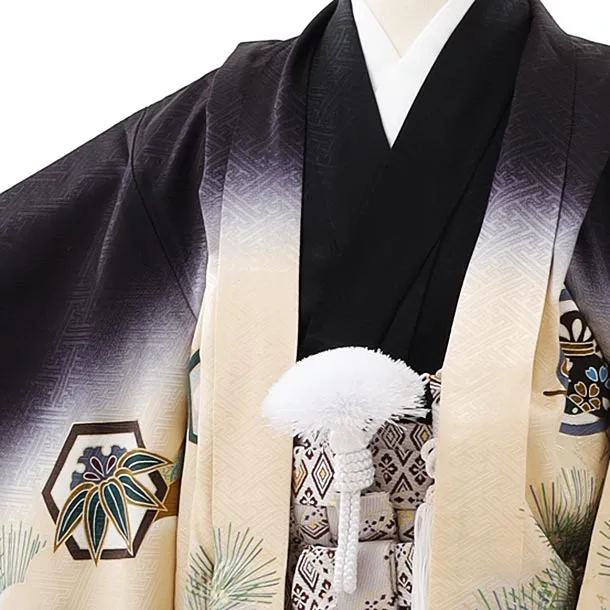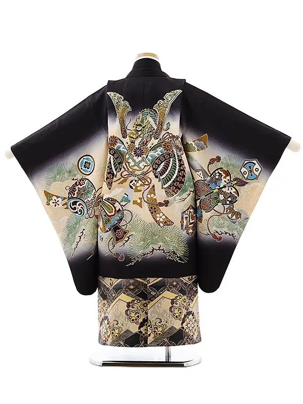 七五三レンタル(5歳男袴)5883【正絹】黒地ぼかし小槌に兜x黒茶金袴