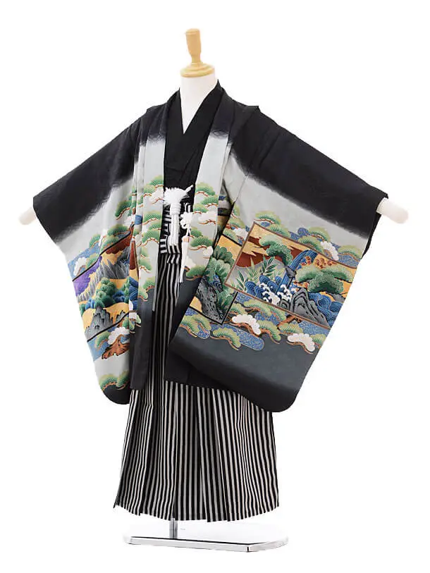 かんたん七五三レンタル(5歳男の子袴)5899黒地かぶとに巻物×白糸袴
