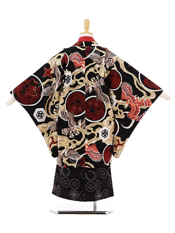 かんたん七五三(5歳男の子袴)5901JAPANSTYLE鷹に丸紋黒×濃茶袴