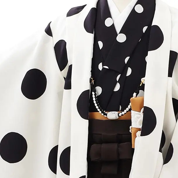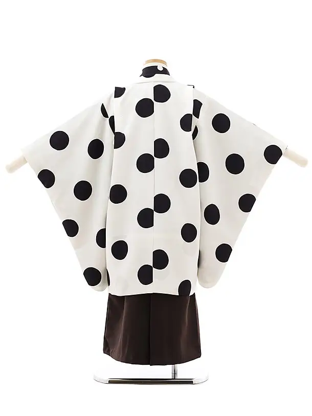 七五三レンタル(5歳男袴)5907白黒ドットx濃茶袴