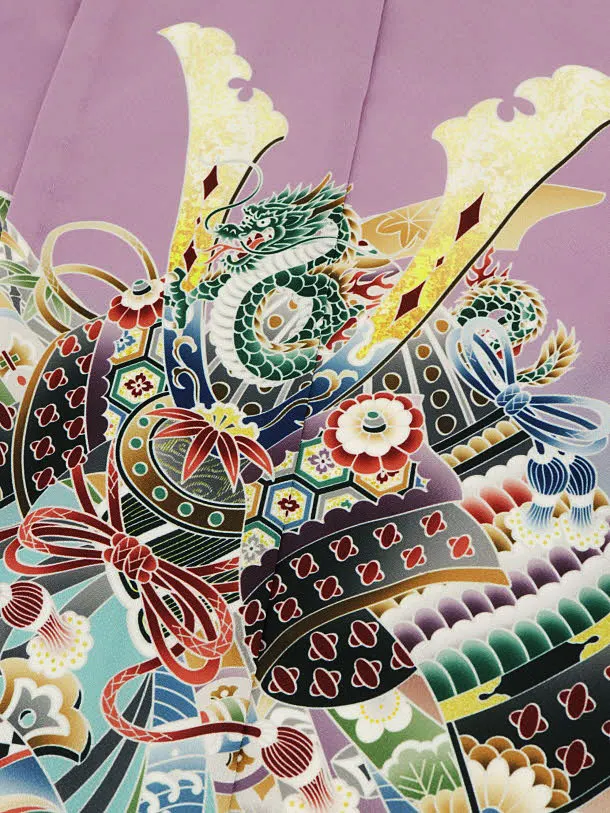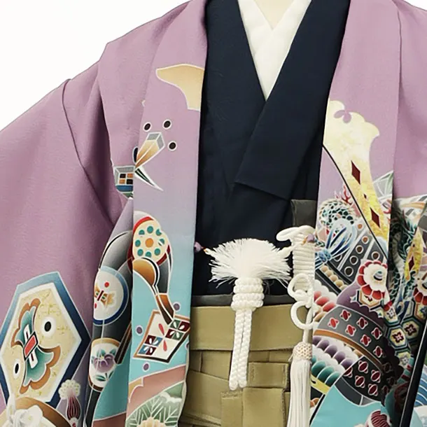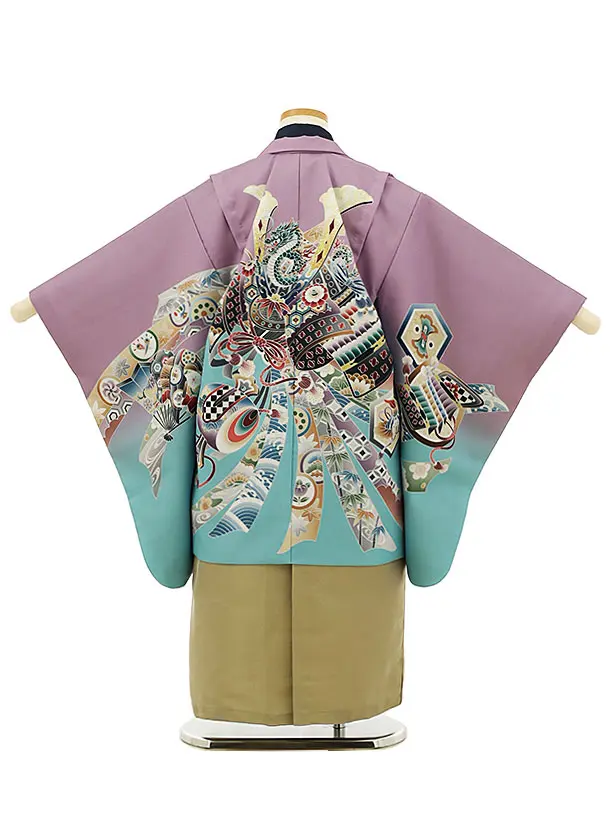 かんたん(5歳男袴)5932ペールパープルぼかし熨斗兜xモスグリーン袴