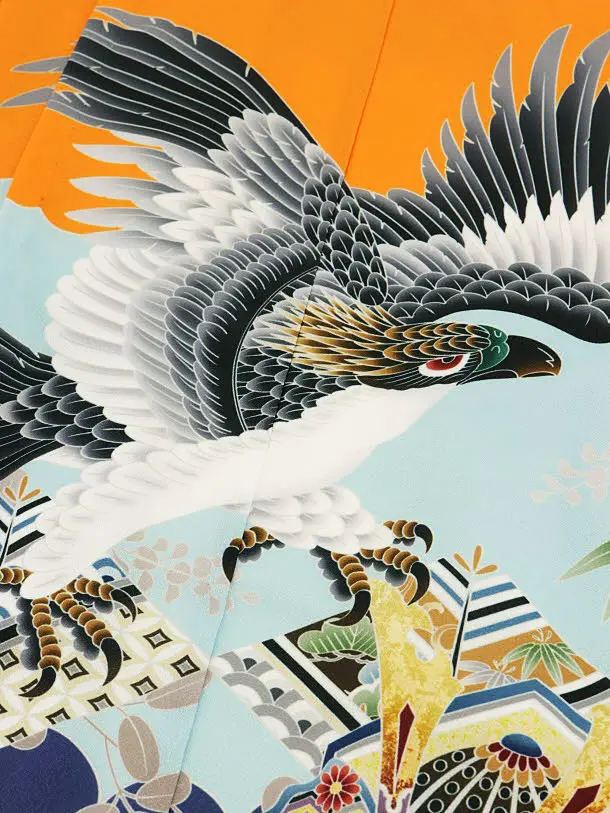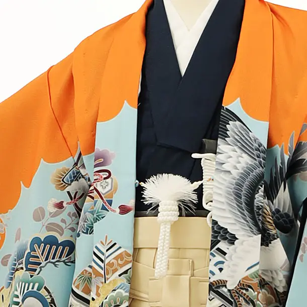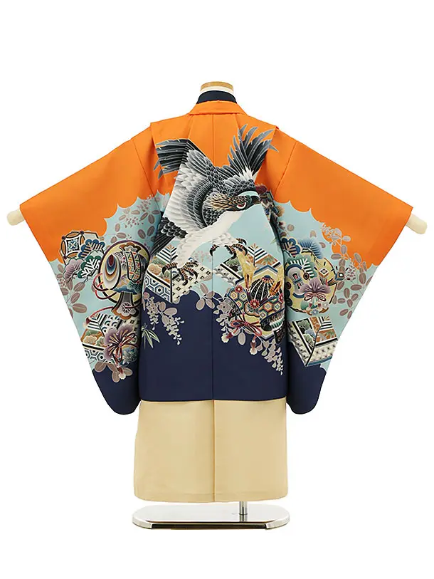 かんたん七五三レンタル(5歳男袴)5937オレンジ染分け小槌鷹xアイボリー袴
