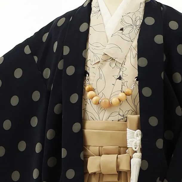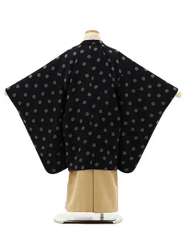 七五三レンタル(5歳男袴)5944ラフィネココ紺ドットxベージュ袴