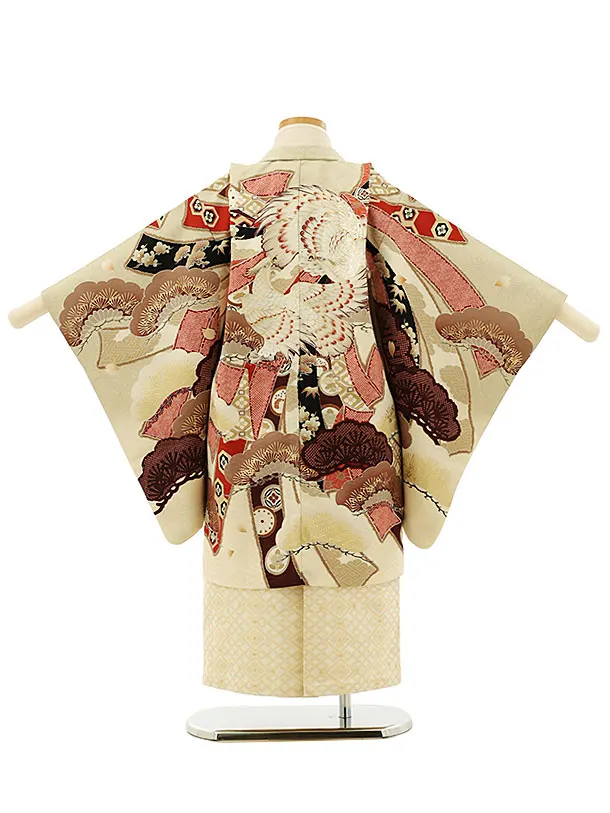 七五三レンタル(5歳男袴)5946華徒然 ベージュ鷹に熨斗目xアイボリー袴