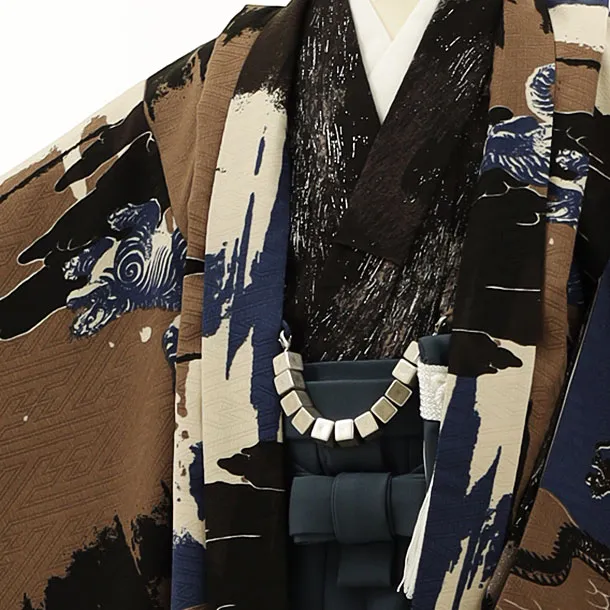七五三レンタル(5歳男袴)5950モダンアンテナ 青色タイガー&ドラゴン