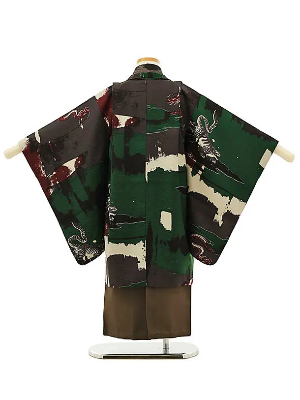 七五三レンタル(5歳男袴)5951モダンアンテナ 深緑タイガー&ドラゴン