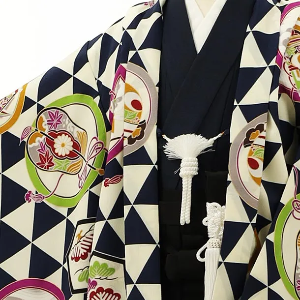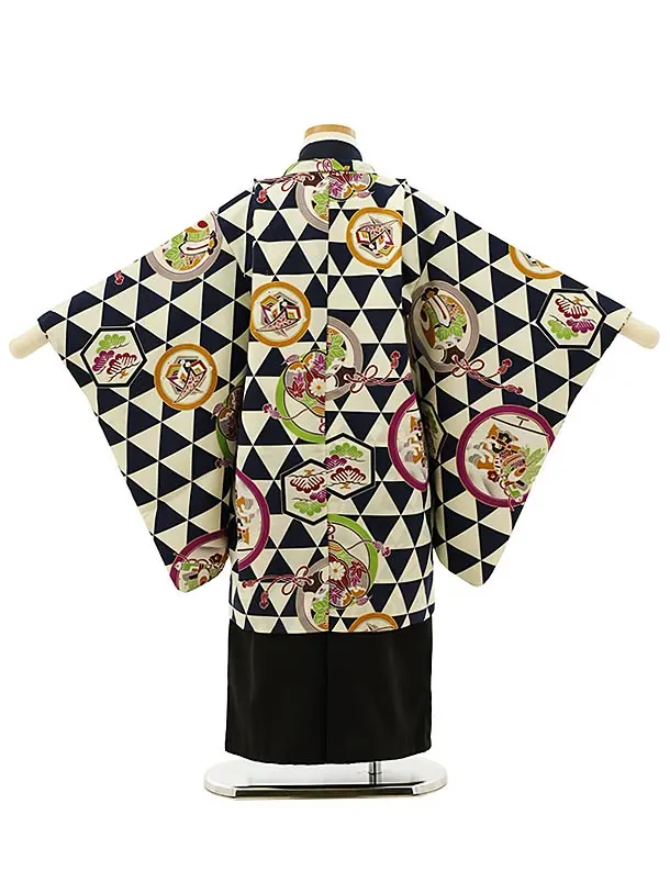 かんたん七五三レンタル(5歳男袴)5958紺白うろこ丸紋×黒袴