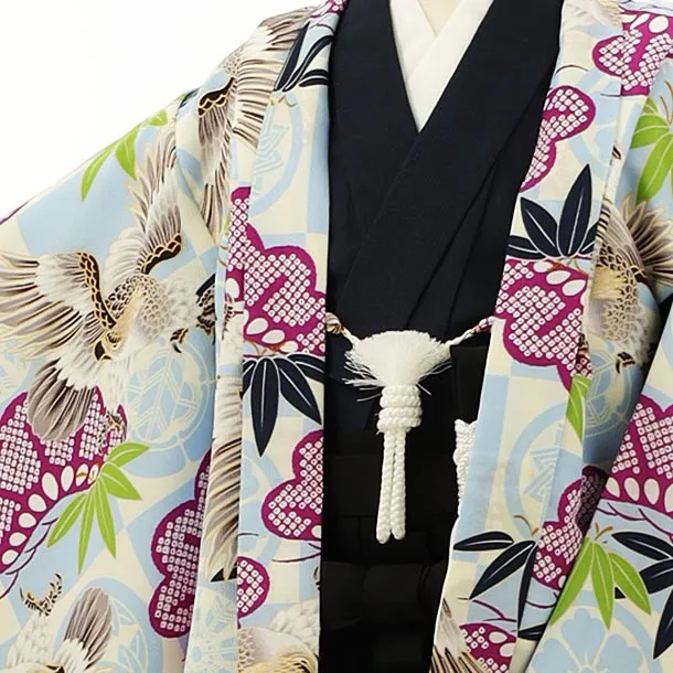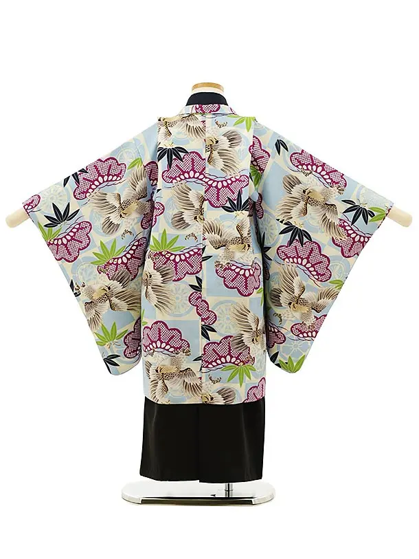かんたん七五三レンタル(5歳男袴)5961水色松竹鶴×黒袴
