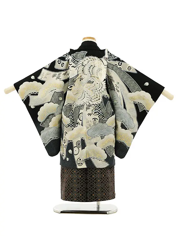 かんたん七五三レンタル(5歳男袴)5964華徒然黒鷹にのし×黒袴