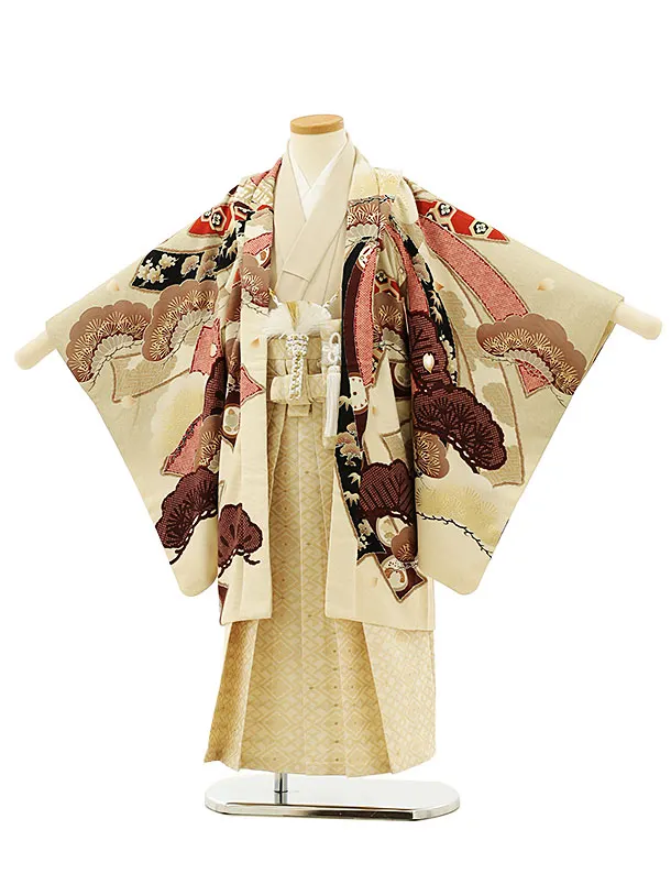 かんたん七五三レンタル(5歳男袴)5965華徒然ベージュ鷹にのし×アイボリー袴