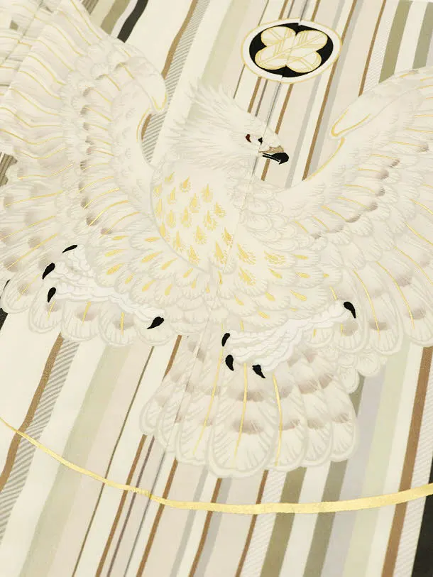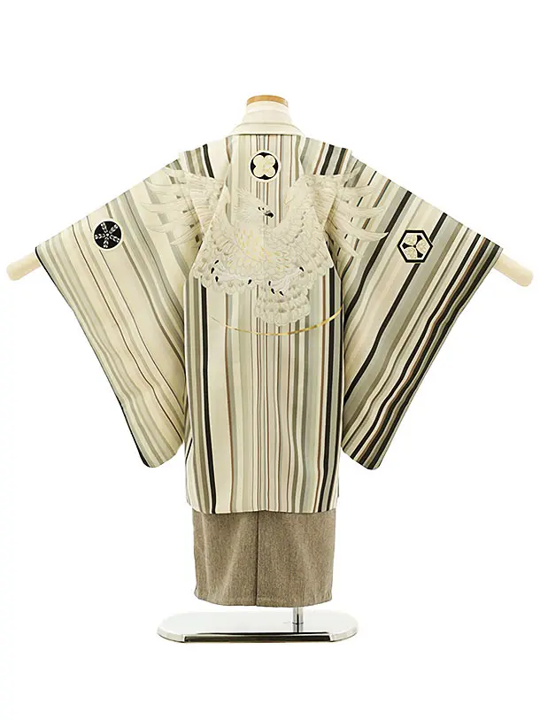 かんたん七五三(5歳男袴)5968シュセットベージュ鷹にストライプ×ベージュ袴