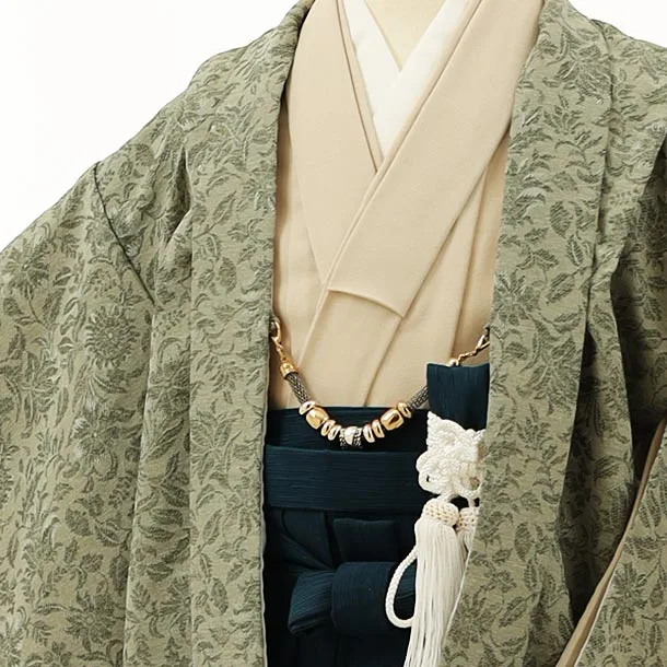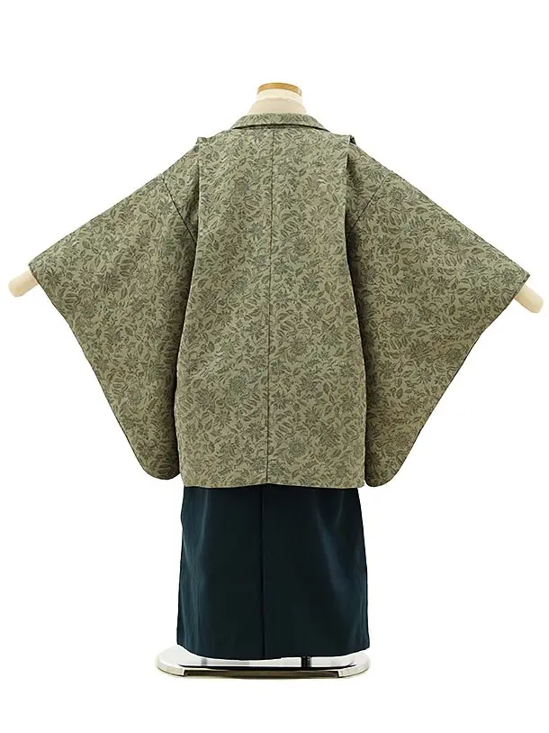 七五三レンタル(5歳男袴)5970グリーンフラワー柄xブルーグリーン袴