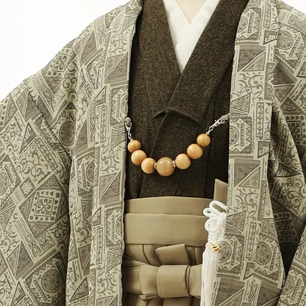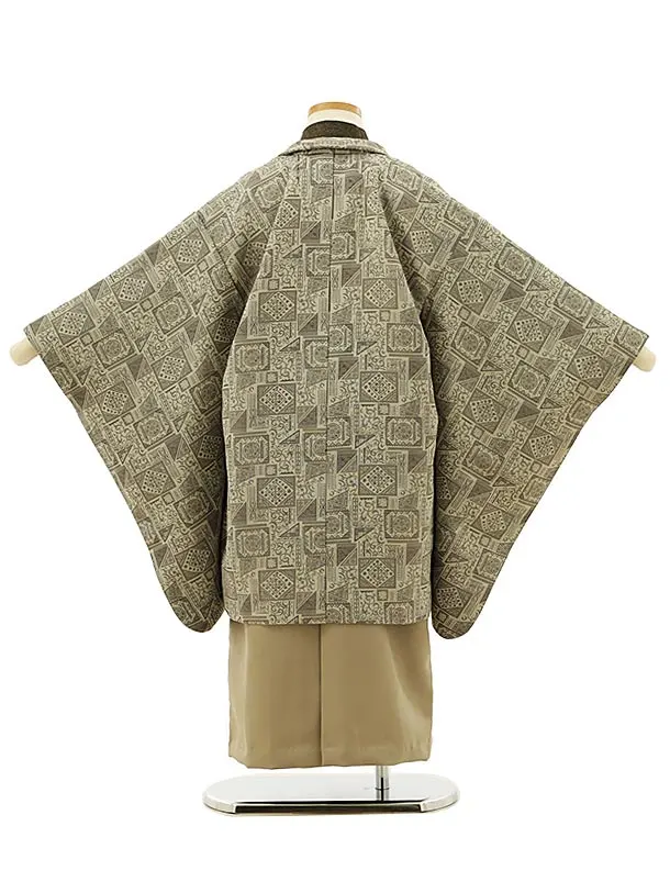 七五三(5歳男袴)5971ラフィネココグレージュ変わり柄×ベージュ袴