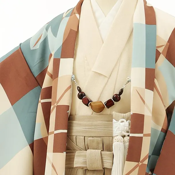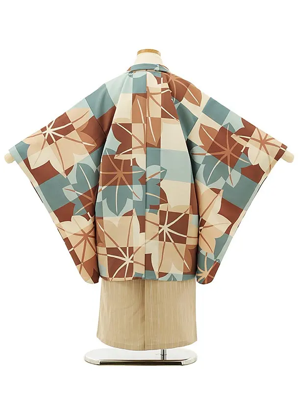 七五三レンタル(5歳男袴)5976花わらべブルーブラウン格子楓×ベージュ袴