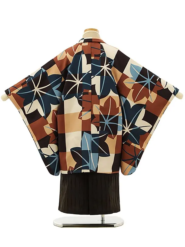 七五三レンタル(5歳男袴)5977花わらべダークブラウン格子楓×ブラウン袴