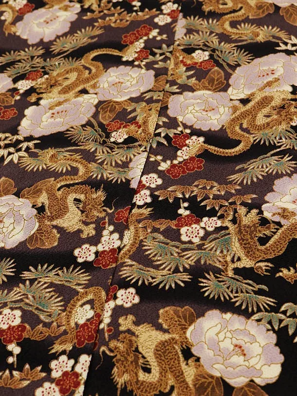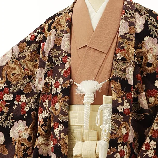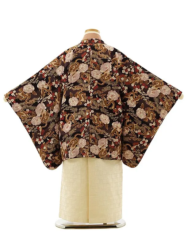 七五三レンタル(5歳男袴)5978黒地松ぼたん梅龍×クリーム袴