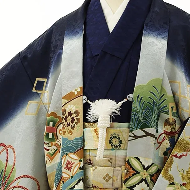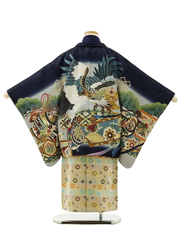 かんたん七五三レンタル(5歳男袴)5991紺地松鷹×多色袴