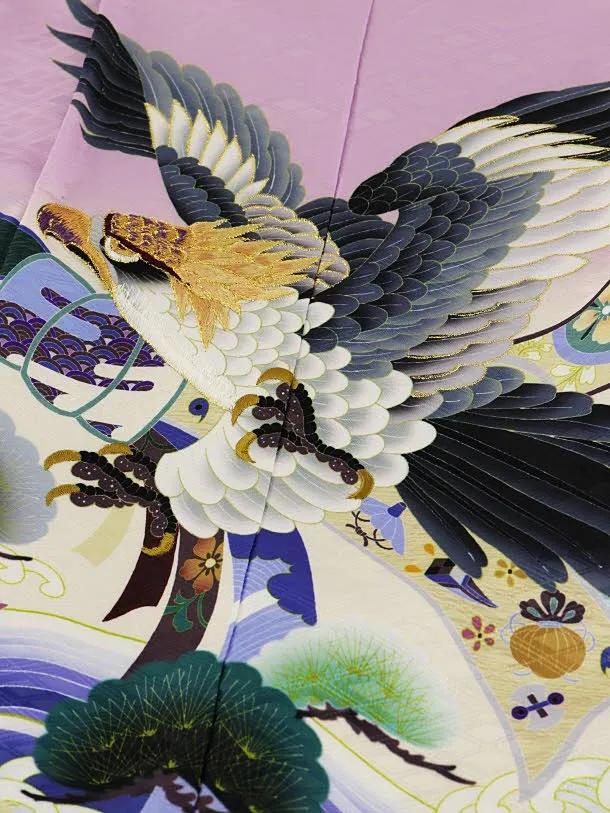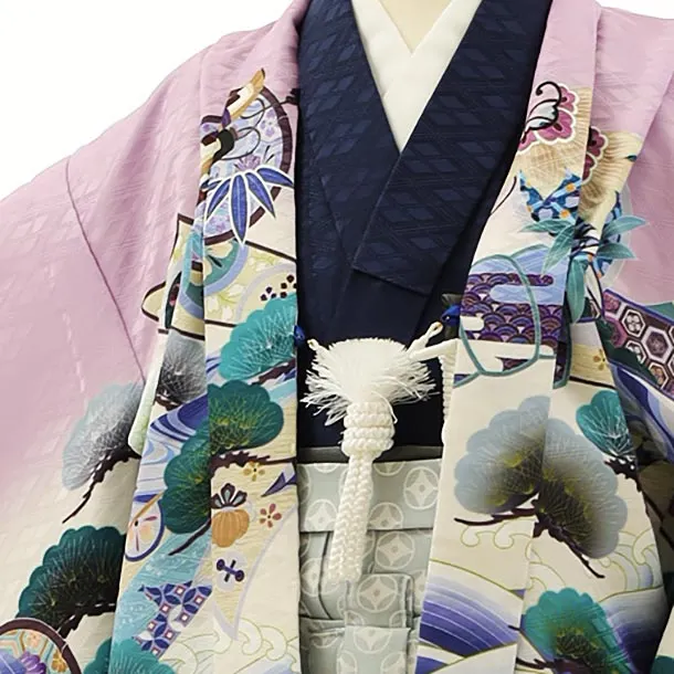 かんたん七五三レンタル(5歳男袴)5993パープル波に束ね熨斗鷹×水色袴