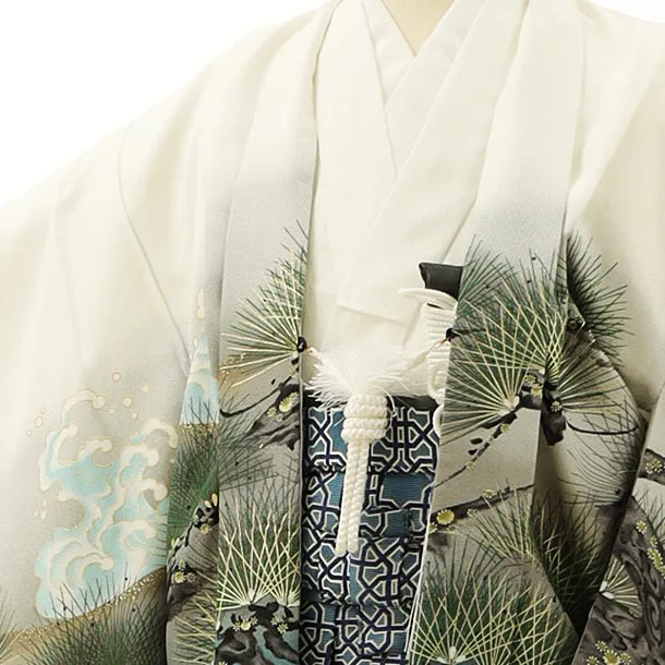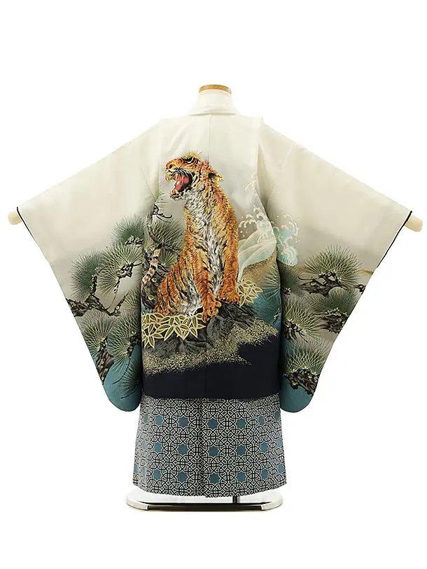 かんたん七五三レンタル(5歳男袴)5999白地松虎×ブルーグレー袴
