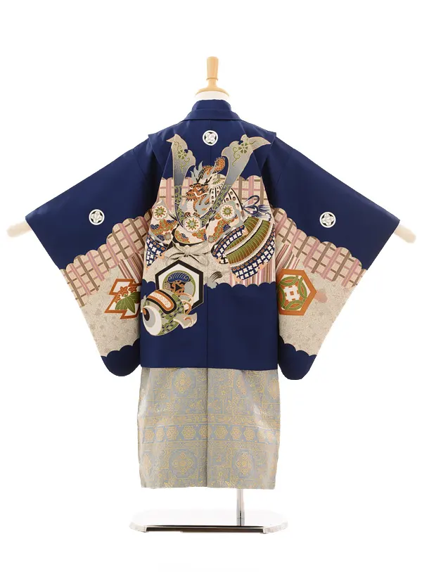 七五三(5男)D029 紺地かぶとに鼓×袴グレー