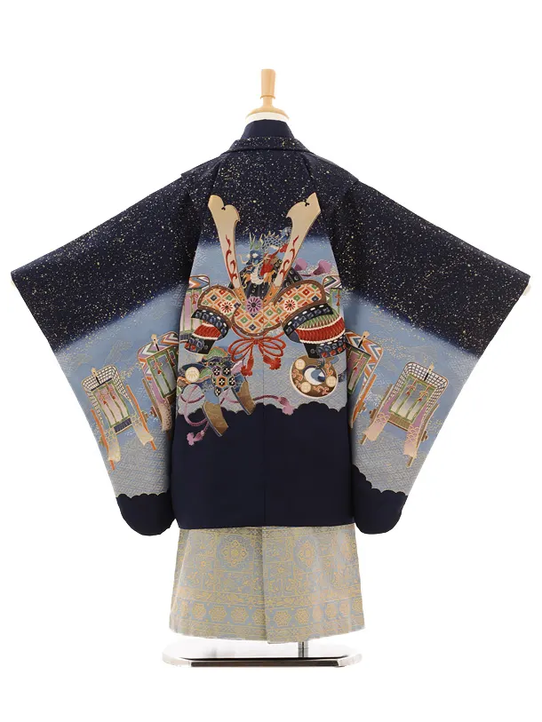 七五三(5歳男袴)D031 紺ラメかぶと×袴グレー
