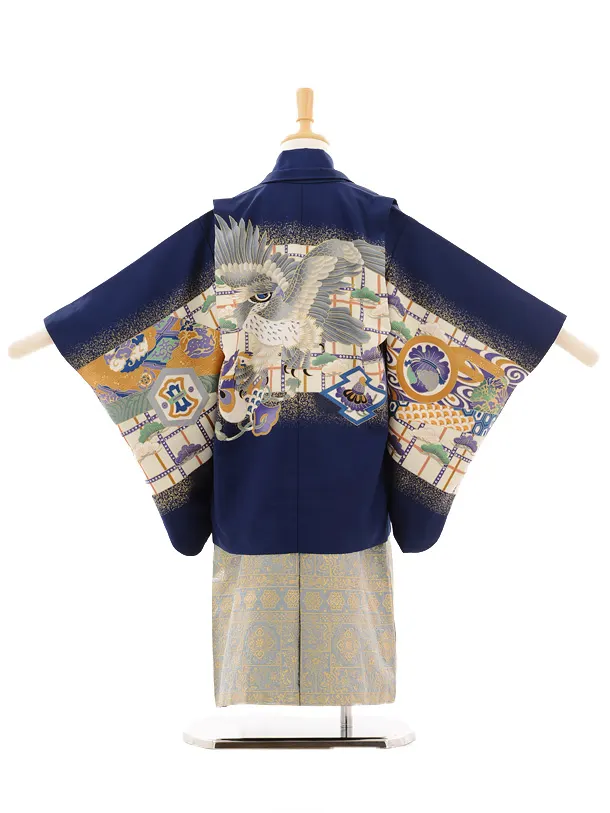 七五三(5歳男袴)D033 紺鷹紋×袴グレー