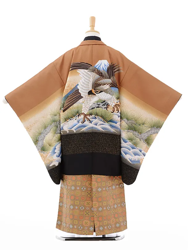 七五三(7歳男袴)G038茶色松富士に鷹×金地袴