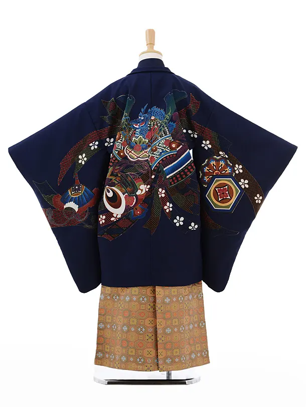 七五三(7歳男袴)G042紺地龍にかぶと×金地袴